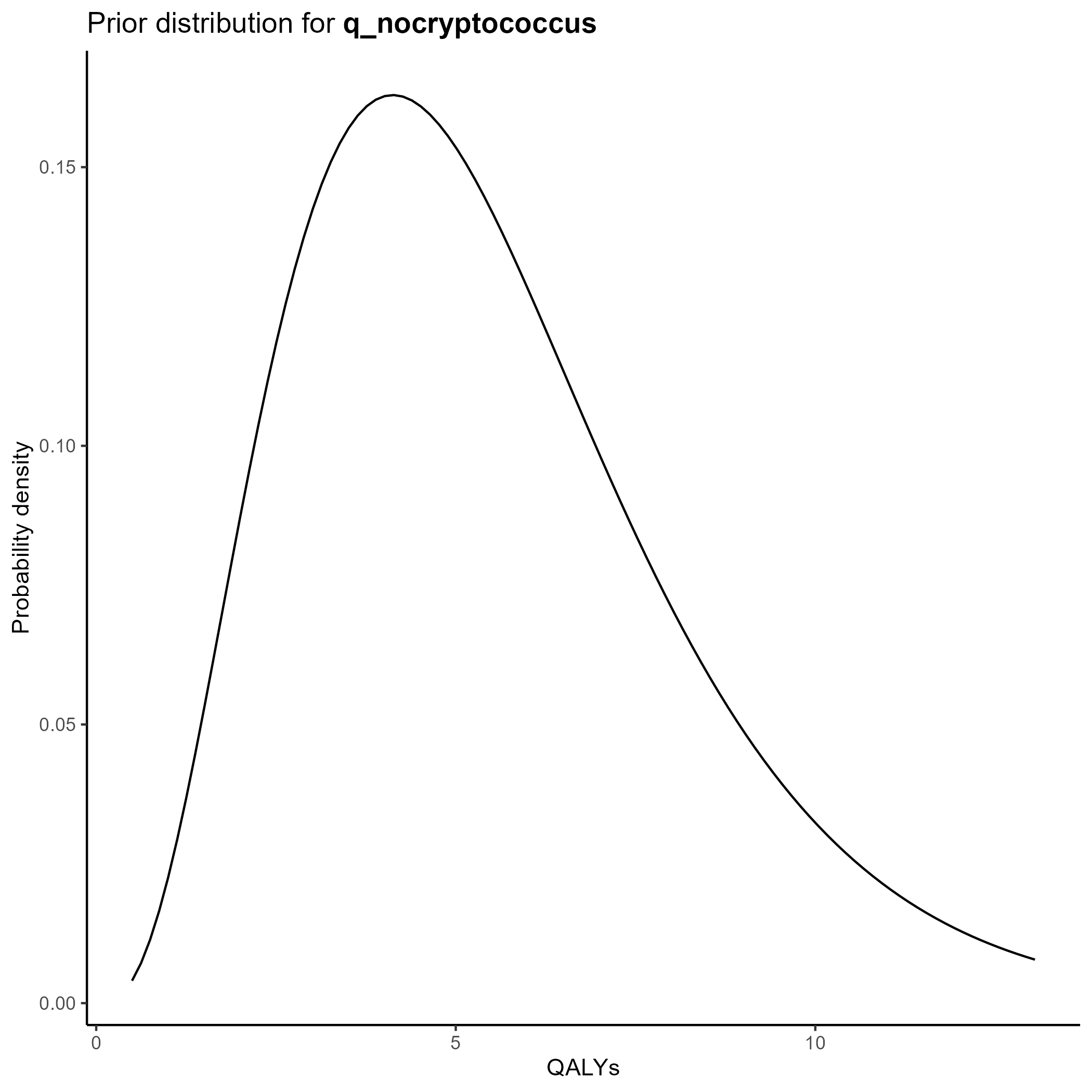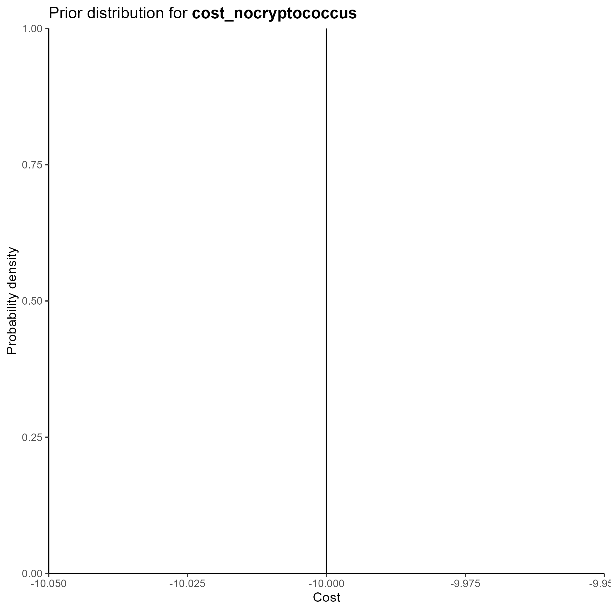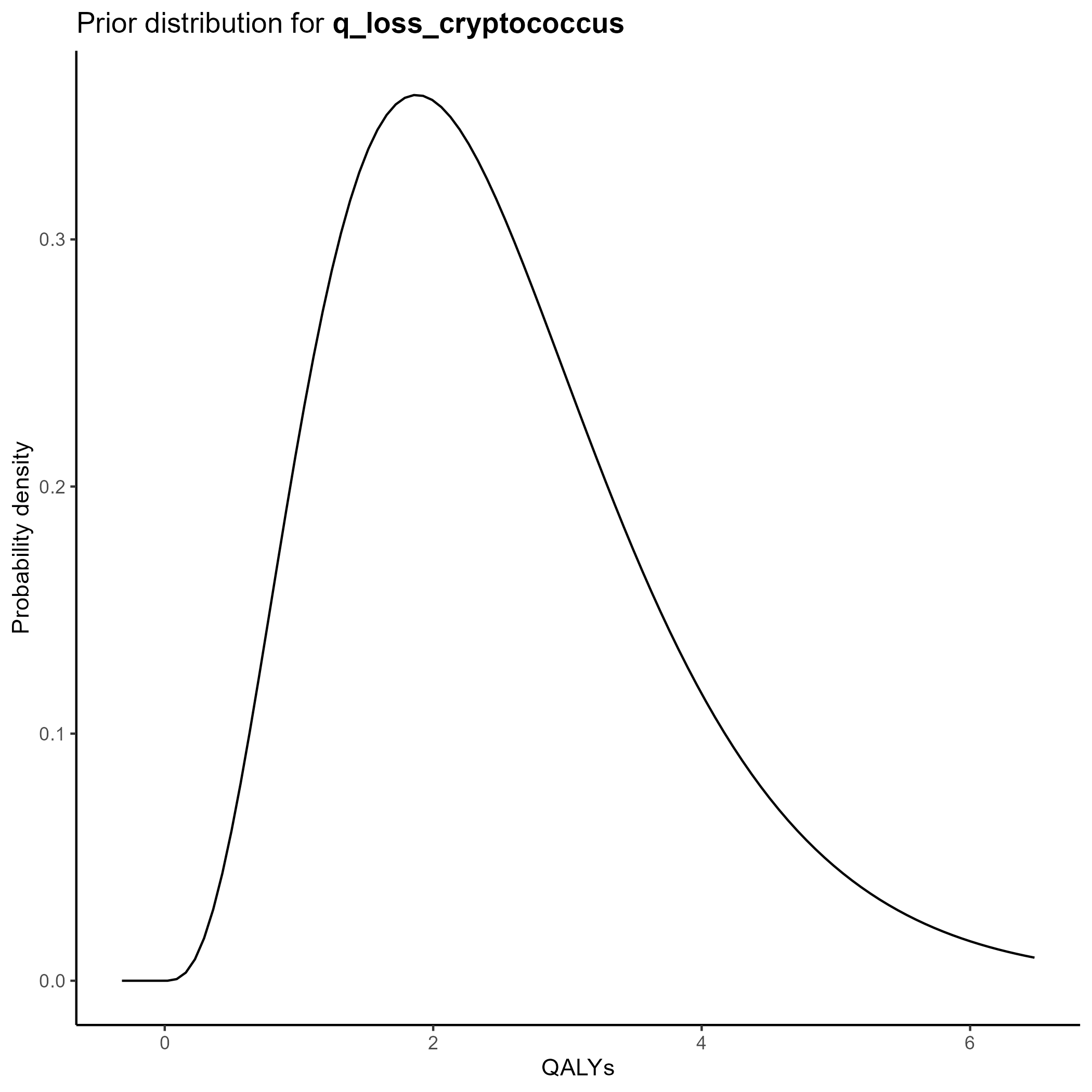 Instead of assigning a single fixed value to each model input (for example, “the probability of cryptococcal transmission is X%”), PSA allows each uncertain parameter to vary across a plausible range based on the available evidence. For each parameter, we specify a prior probability distribution that reflects how uncertain we are about its true value.