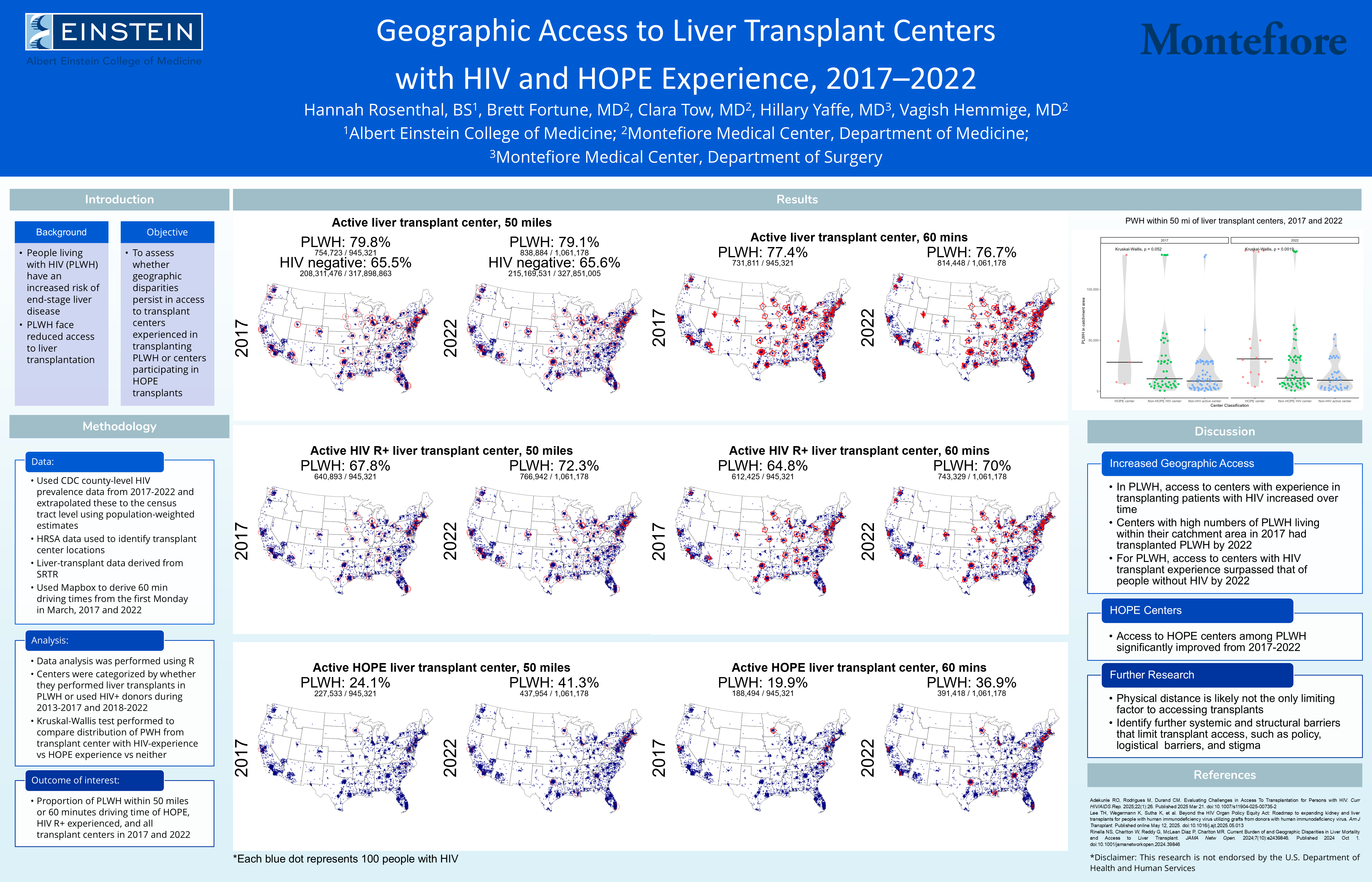This project integrates HIV epidemiologic data with SRTR transplant center data to examine geographic access to HIV-experienced transplant programs across the United States.