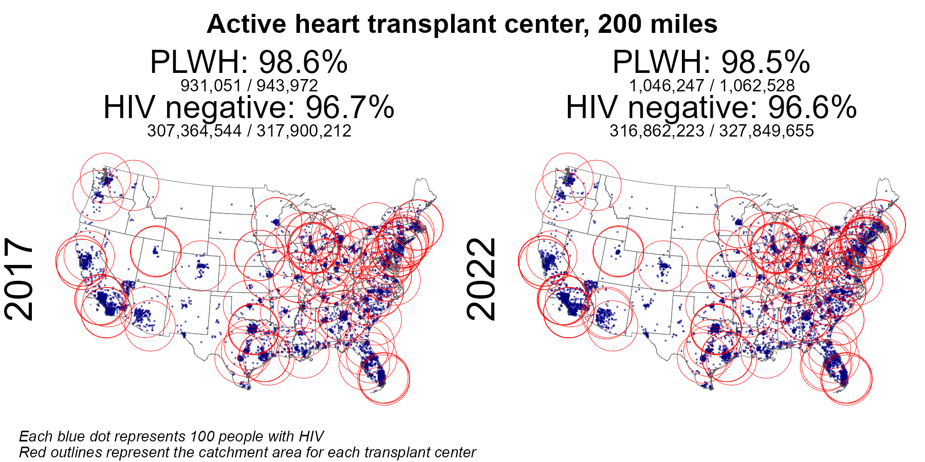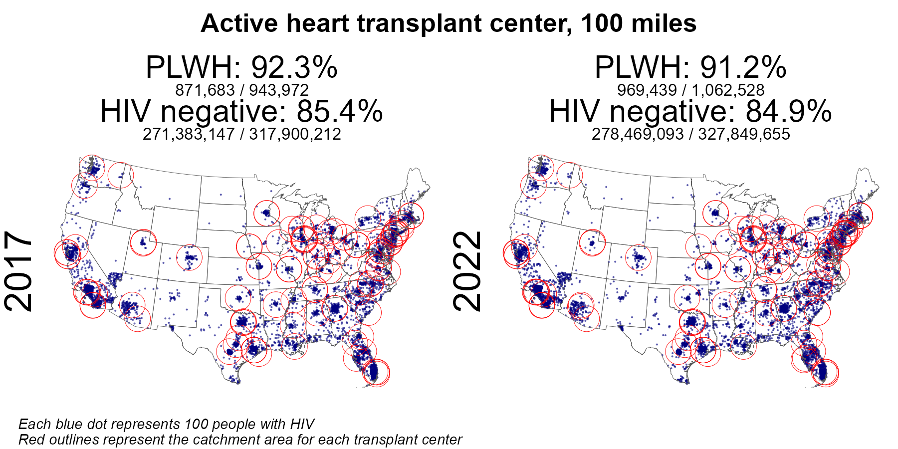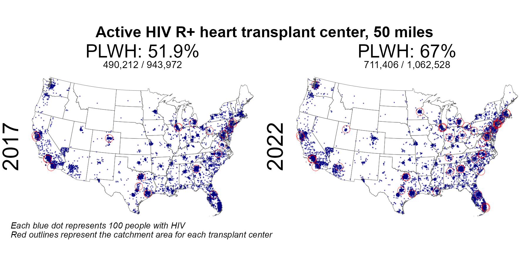 | Active HIV R+ heart center 50 mile radius | 490,212 | 943,972 | 51.9 | 711,406 | 1,062,528 | 67.0 |