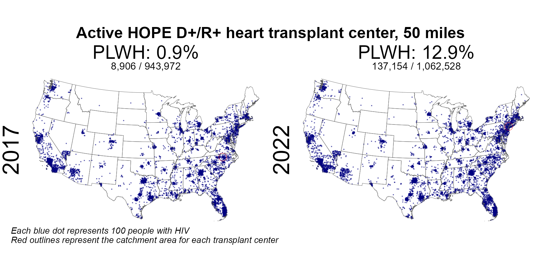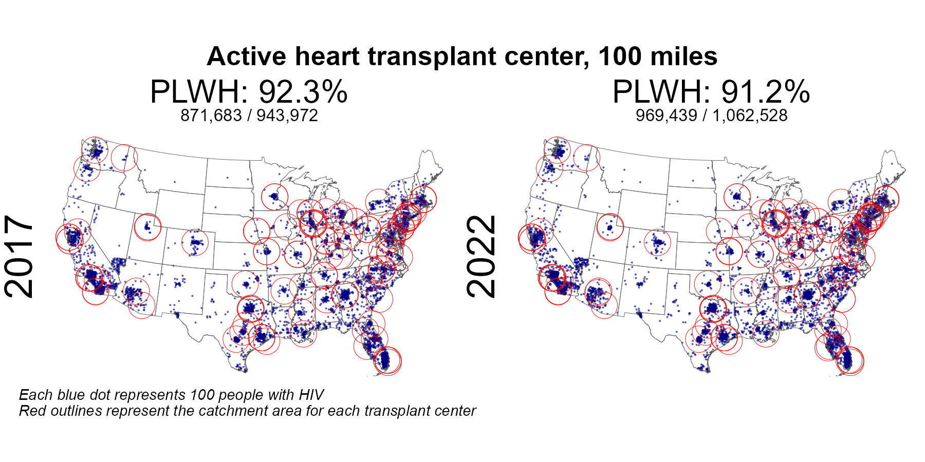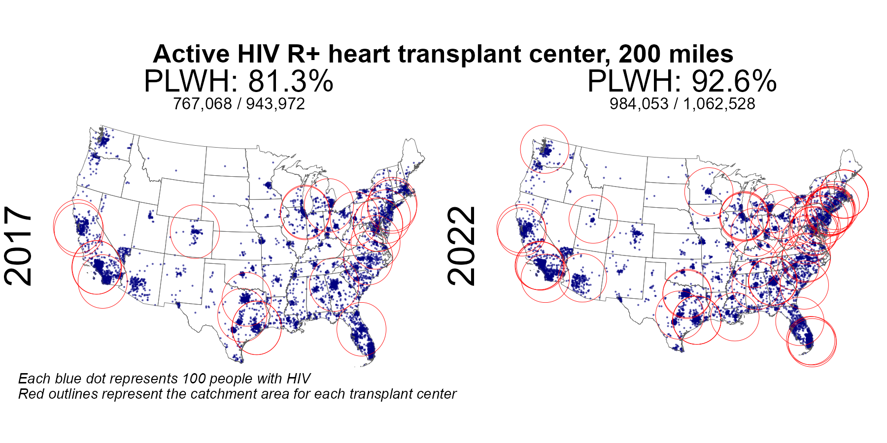| Active HIV R+ heart center 50 mile radius | 490,212 | 943,972 | 51.9 | 711,406 | 1,062,528 | 67.0 |