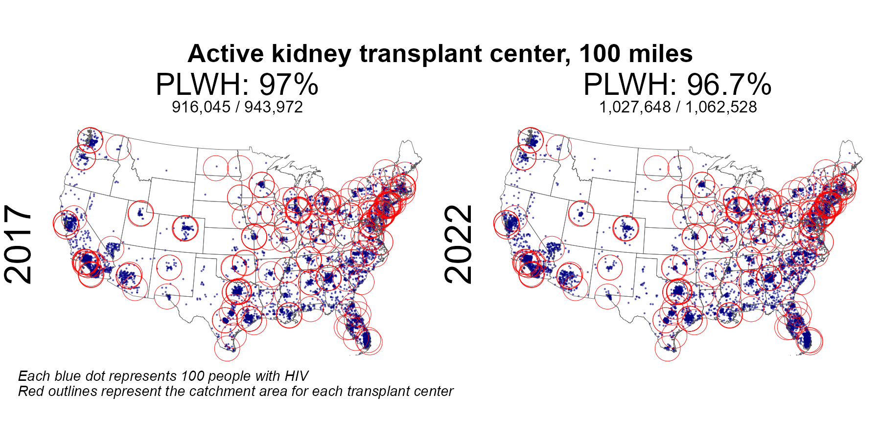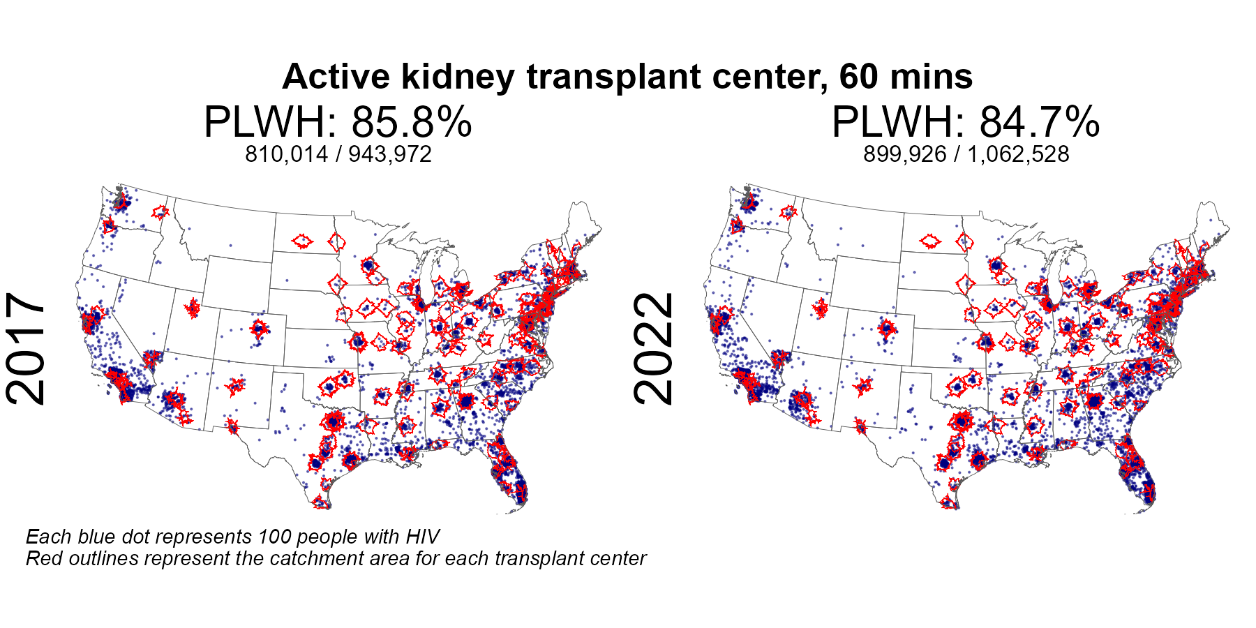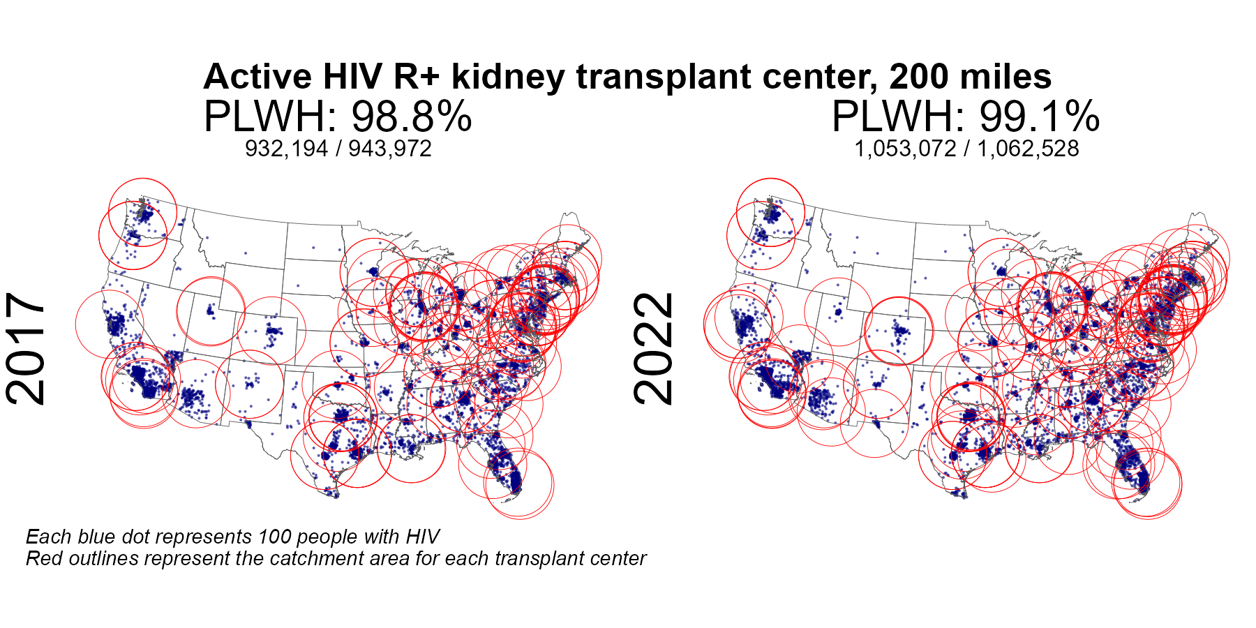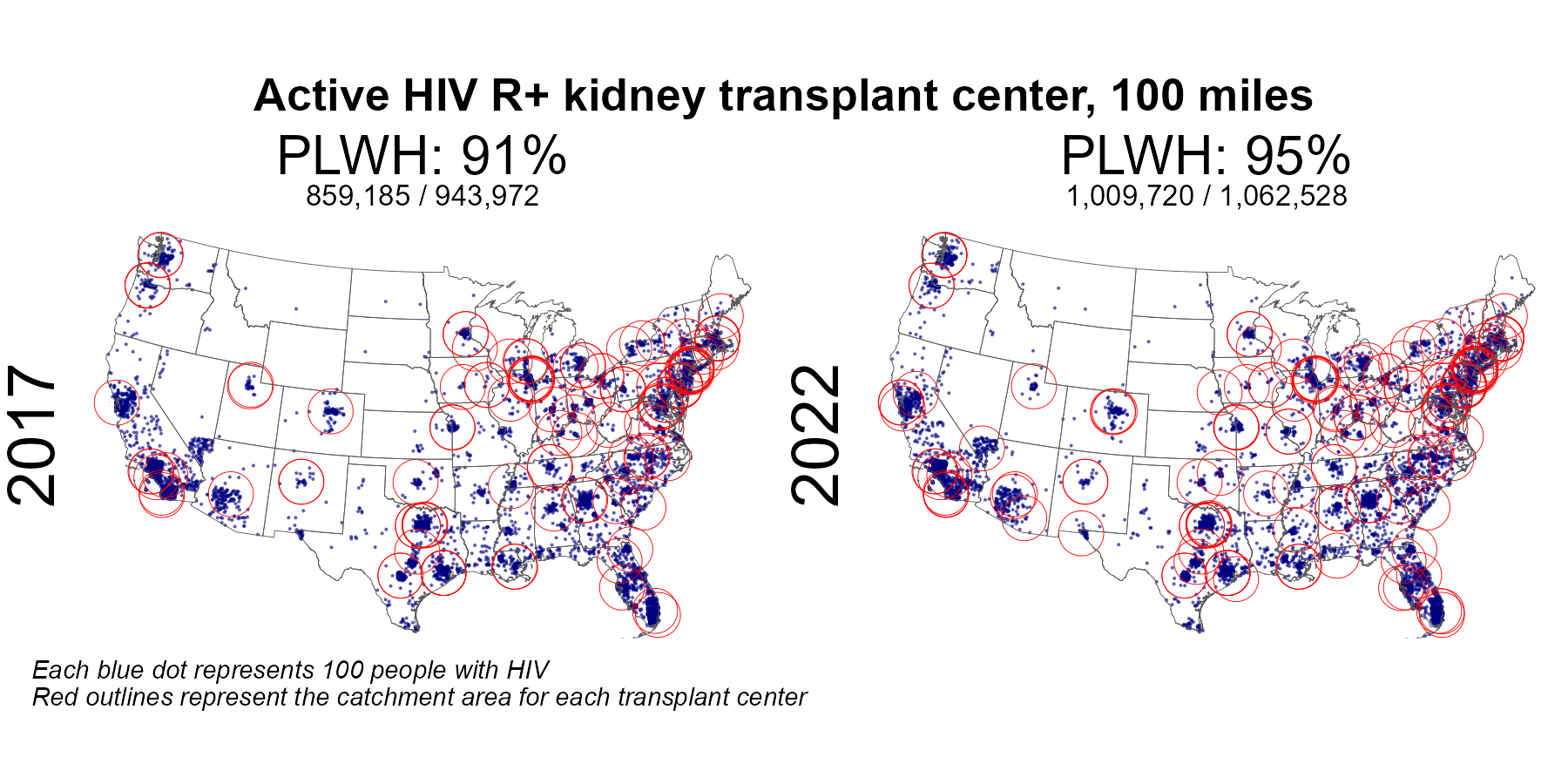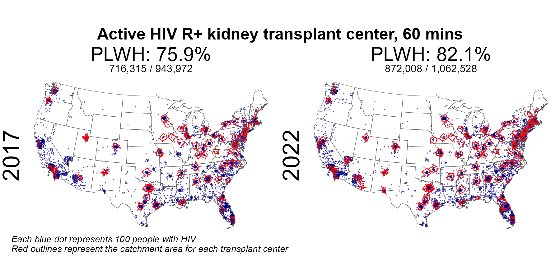 | Active HIV R+ kidney center 60 min radius | 716,562 | 943,972 | 75.9 | 871,997 | 1,062,528 | 82.1 |