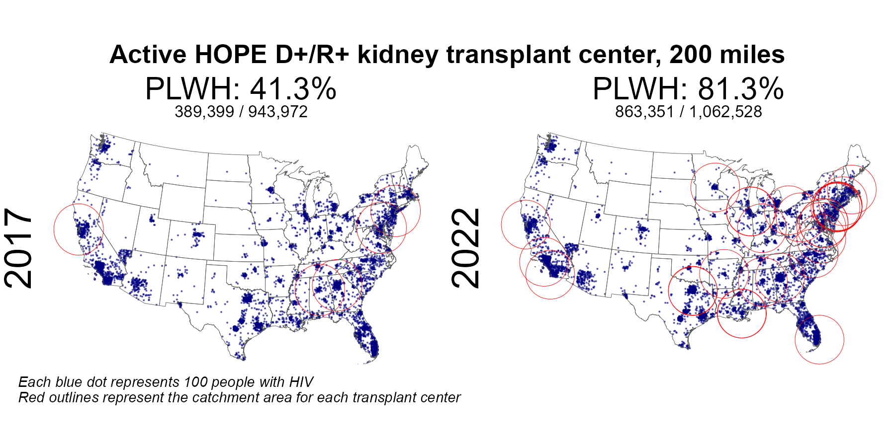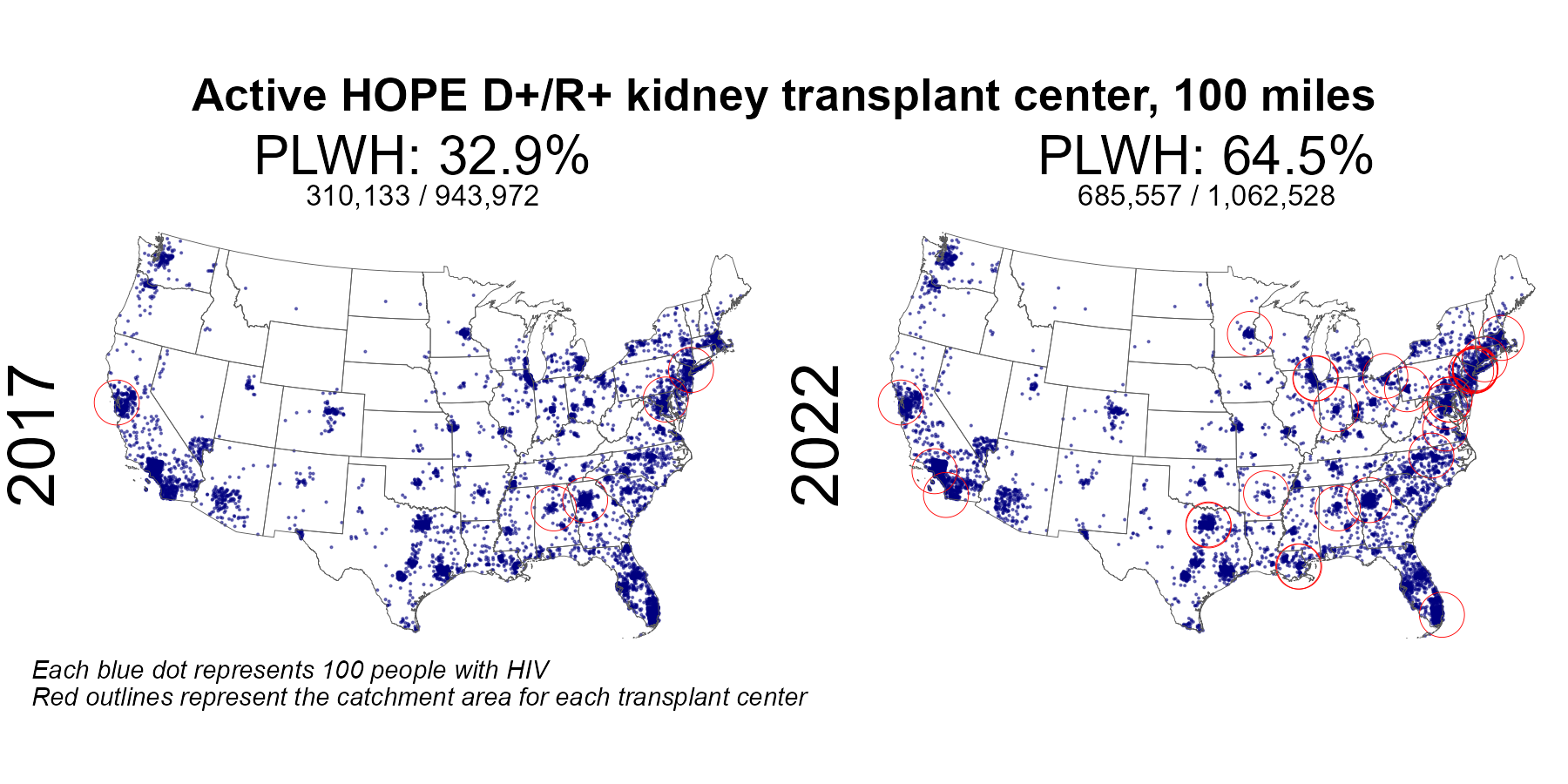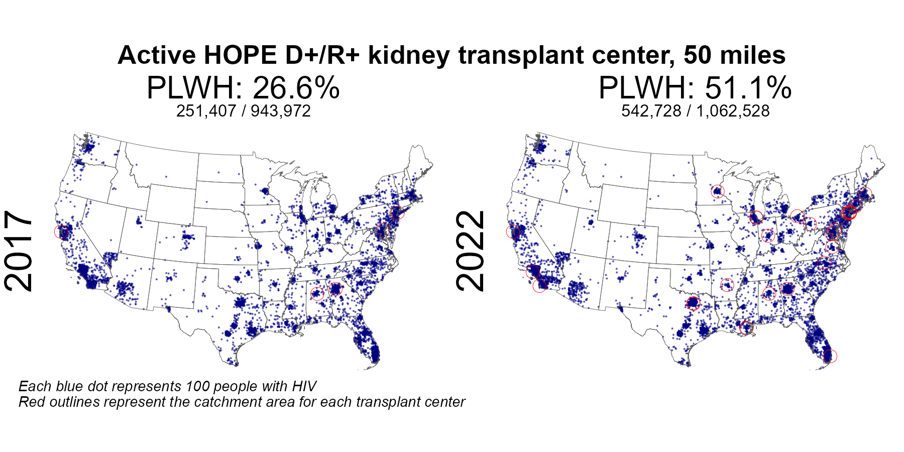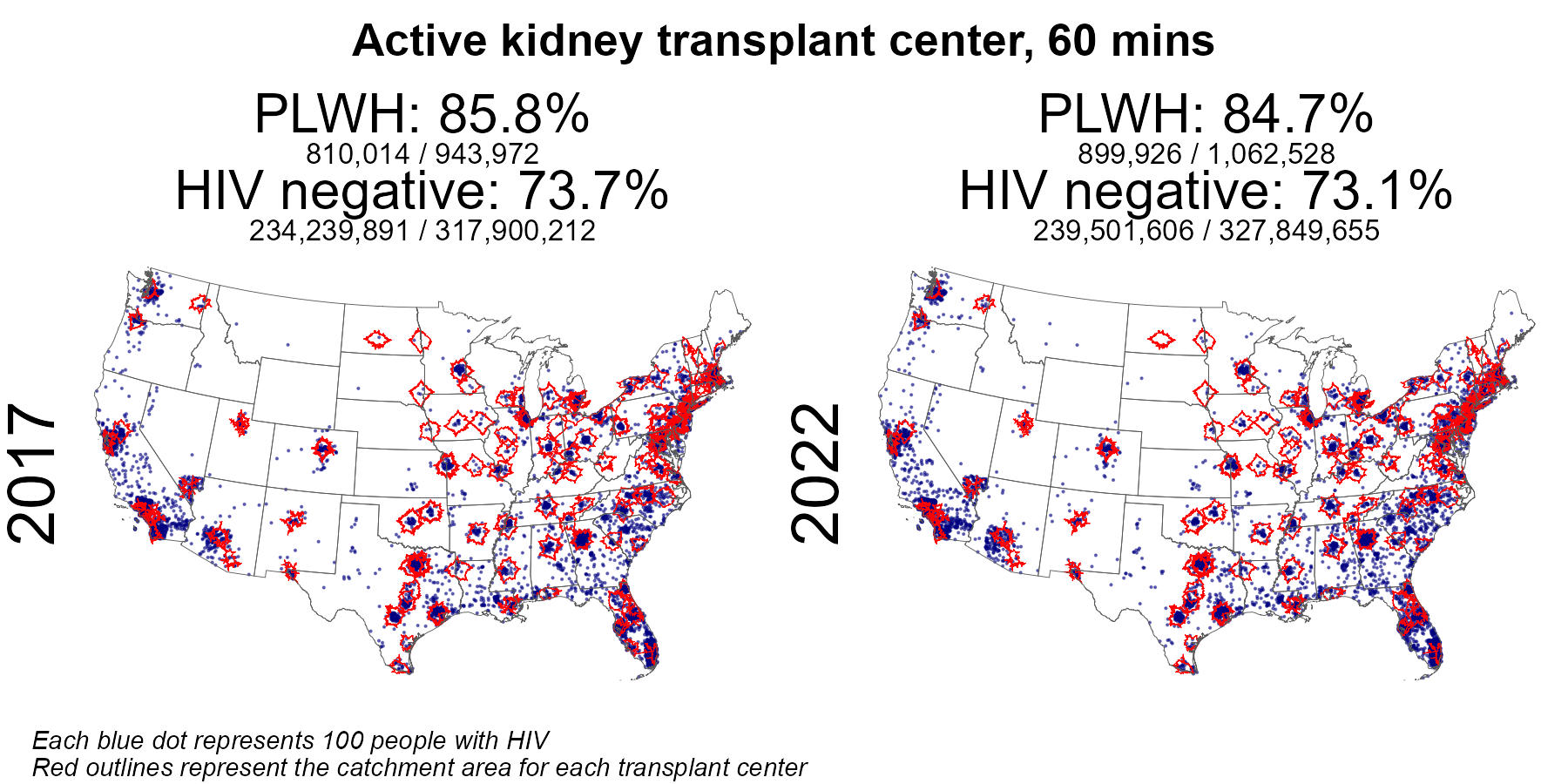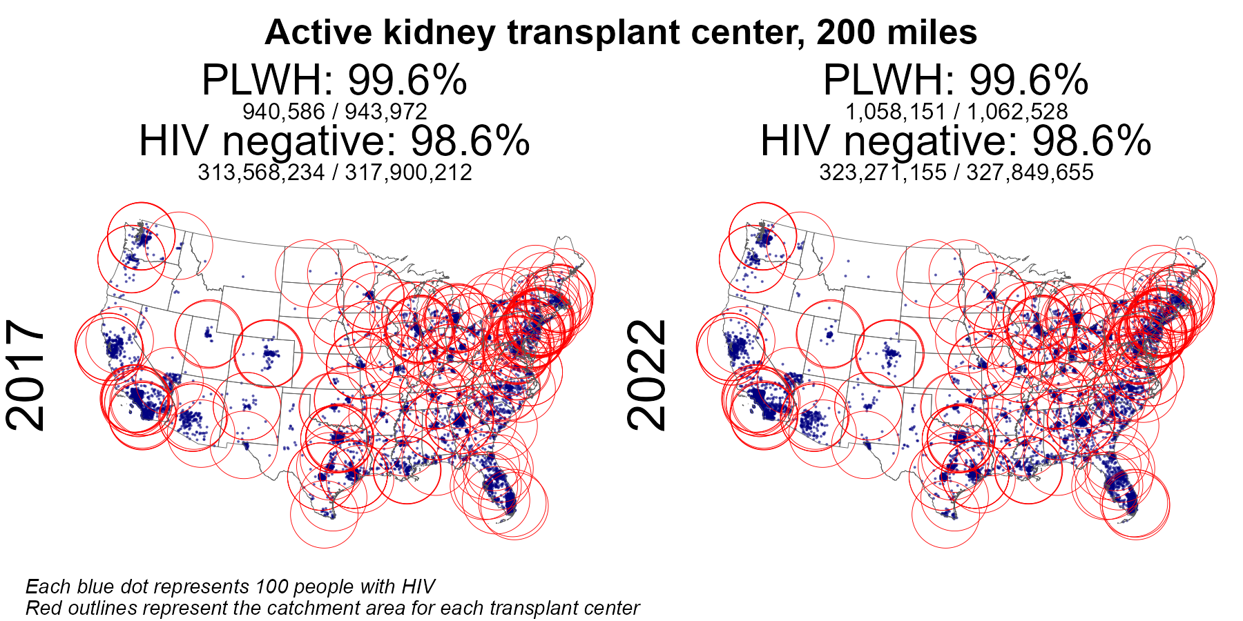 | Active HIV R+ kidney center 60 min radius | 716,562 | 943,972 | 75.9 | 871,997 | 1,062,528 | 82.1 |